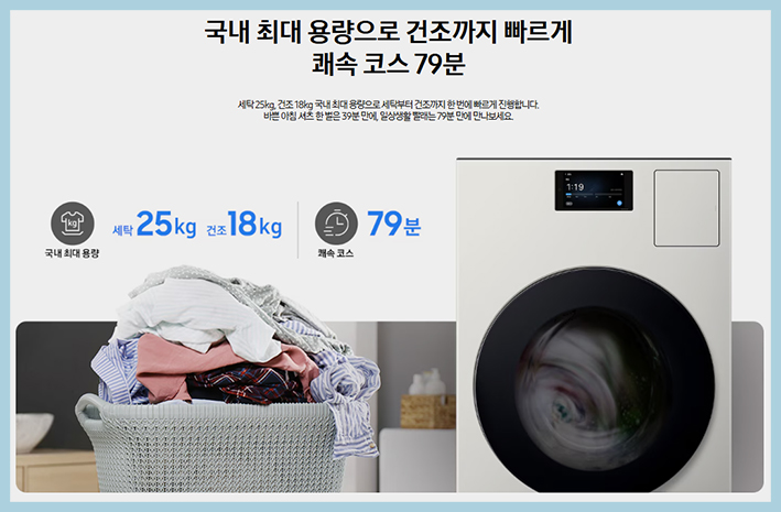 가능하고 빨래를 보송하게 건조까지 해 주니까 삶의 질을 높일 수 있어요