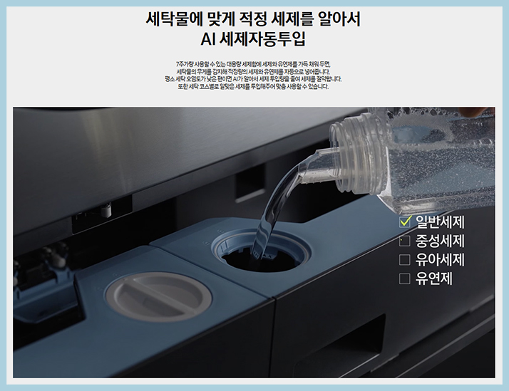 삼성 AI 콤보 세탁기건조기 일체형 WD90F25AHY 는 자동 세제 투입 기능과