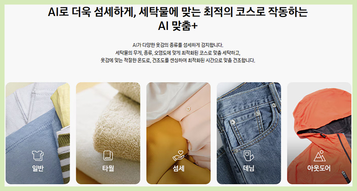 무게 종류 오염도에 맞게 최적화된 코스로 맞춤 세탁하고 옷감에 맞는 적절