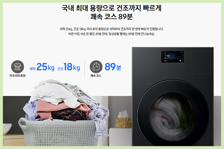 세탁 25kg 건조 18kG 국내 최대 용량으로 세탁부터 건조까지 한 번에