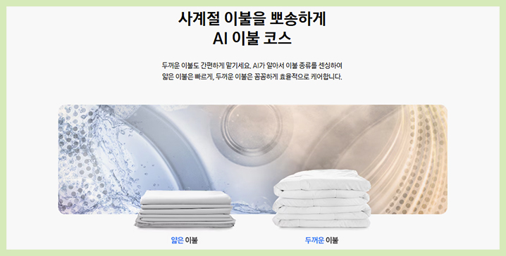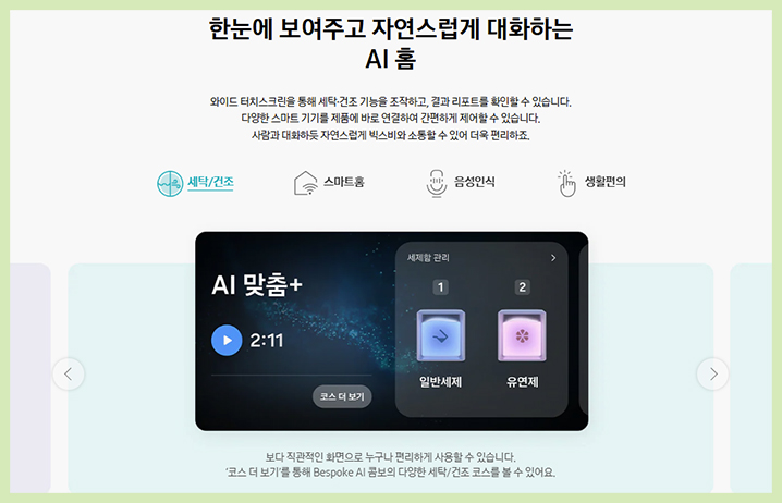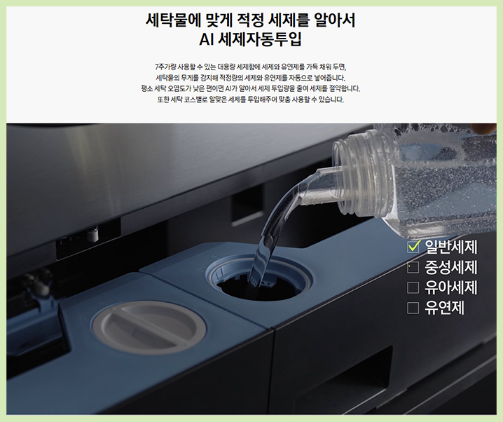 자의 취향에 맞춰 옵션까지 선택하여 사용할 수 있는 비스포크 AI 콤보 세탁