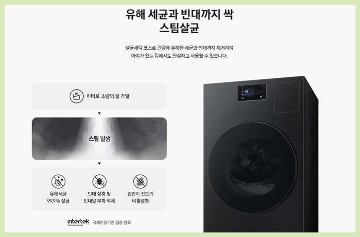 비스포크 AI 콤보 세탁건조기 는 유해 세균과 빈대까지 싹 제거할 수 있도록