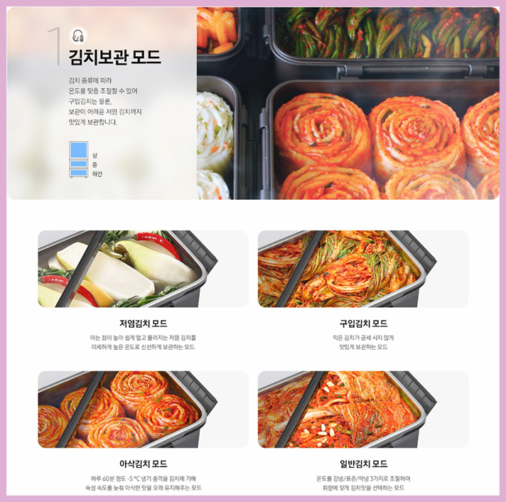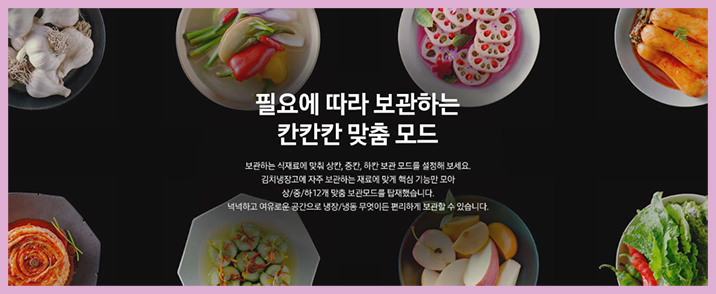 상칸 중칸 하칸 보관모드를 설정하는 칸칸칸 맞춤 모드로 김치냉장고에 자주
