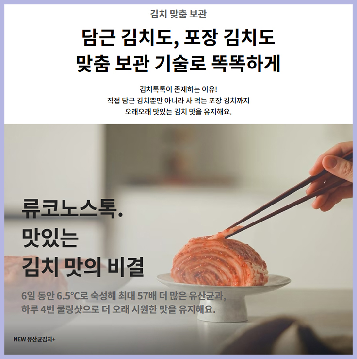 김치 보관에 최적화된 첨단 기술과 세련된 디자인이 조화를 이루는 제품