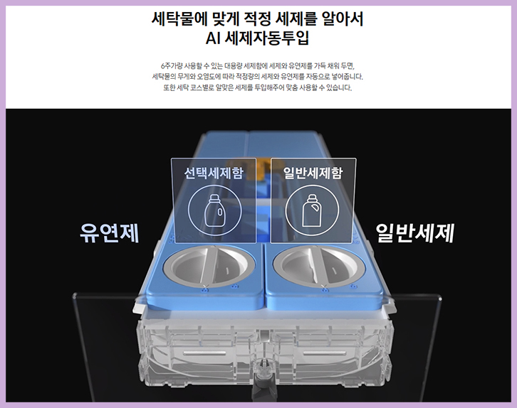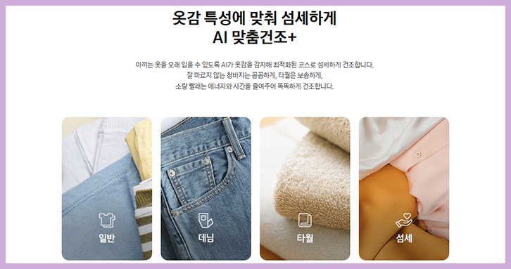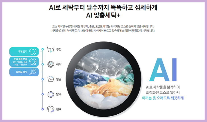 AI가 최적의 세탁 코스를 추천해 주기 때문에 세탁 효율은 물론 옷감 손상을