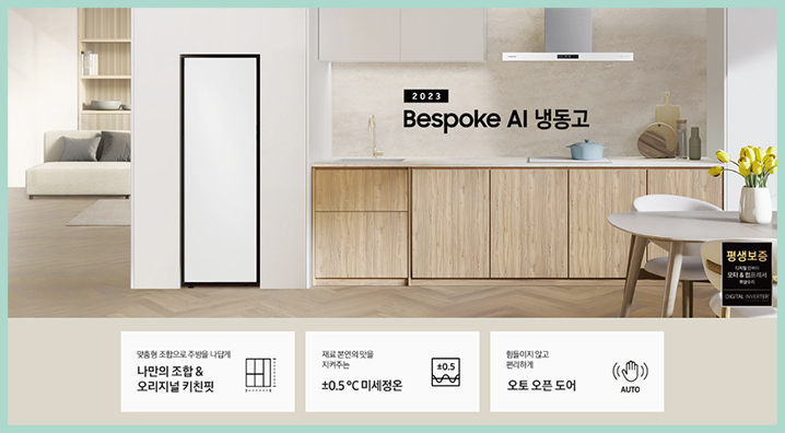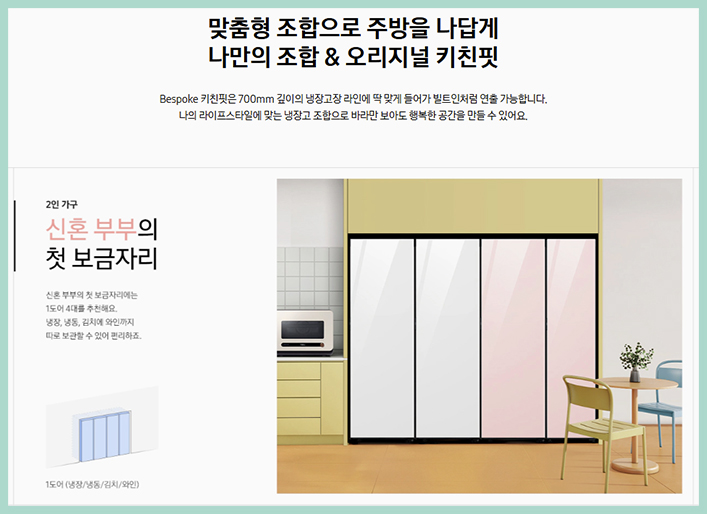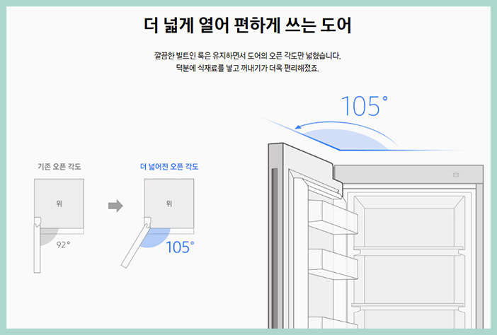 때문에 빌트인 가전처럼 깔끔한 주방 인테리어를 완성할 수 있으며 주방 공간을