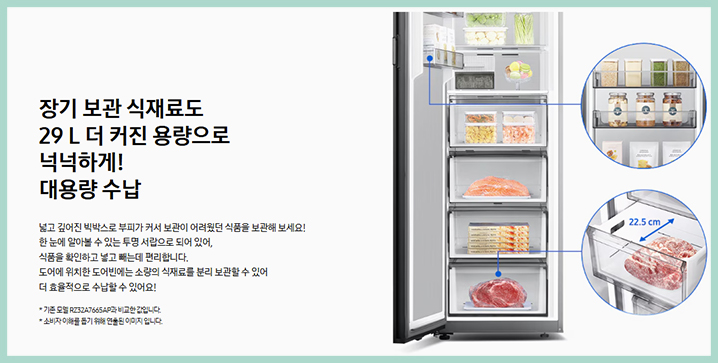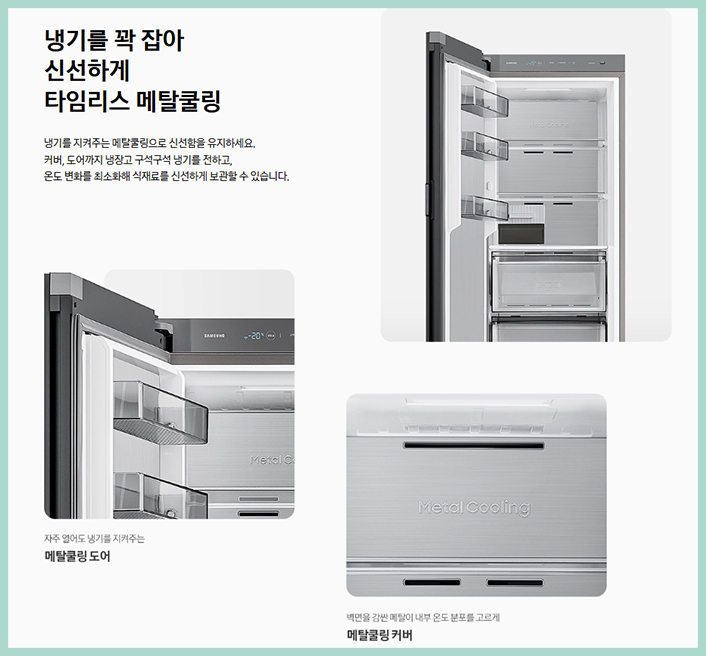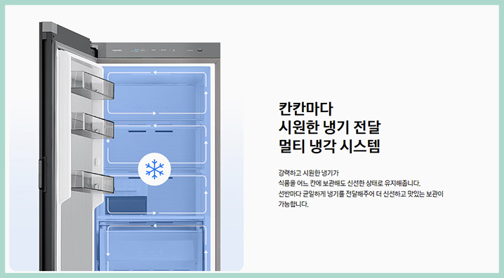 을 통해 식품의 신선도를 지켜 주는데요 고성능 컴프레셔가 내부 온도를 균일하게