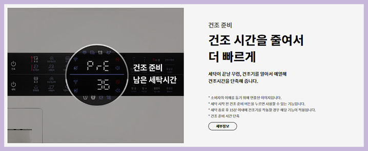기능에 반하실 텐데요 오후에 세탁 시작하면 저녁에는 바로 건조된 깨끗한 빨래를