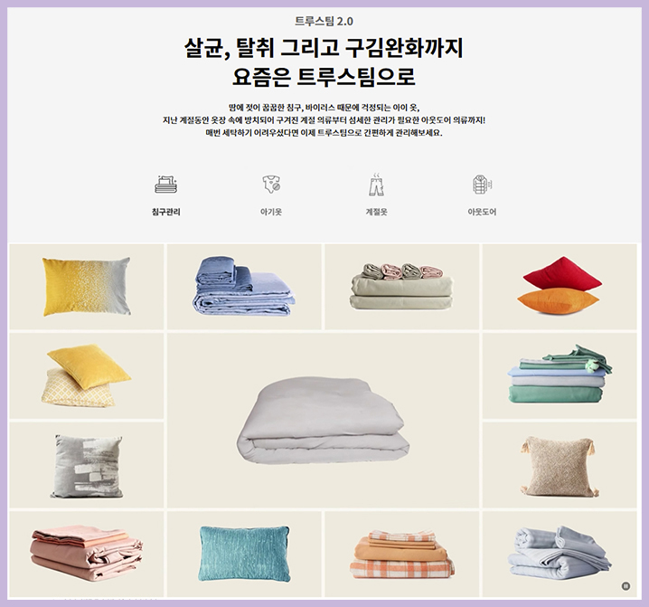 를 지원해 다양한 의류 케어가 가능하도록 트루스팀 2.0을 지원하여 침구부터