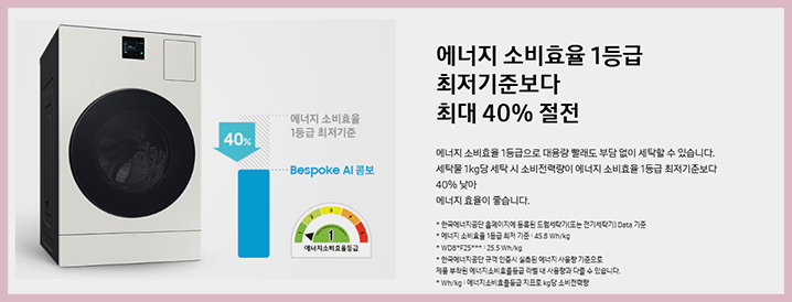 주는 삼성 비스포크 AI 콤보 25kg 15kg 는 에너지 1등급으로 고효율가전