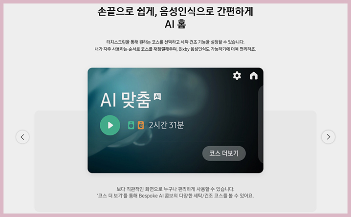 사용자의 취향에 맞춰 세탁 건조 추가적인 옵션을 선택하거나 스마트 기능을