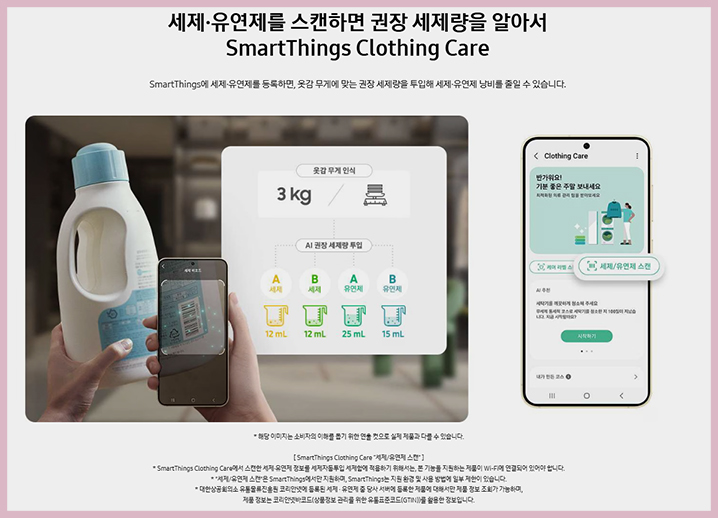 는 세제와 유연제를 스캔하면 권장 세제량을 알아서 조절해 주는데요 스마트