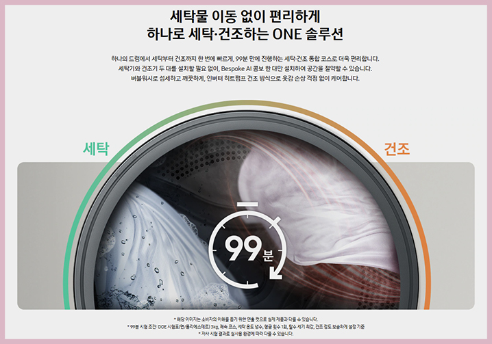 더해 언제 어디서나 세탁과 건조가 가능해 스마트한 라이프 스타일을 연출해