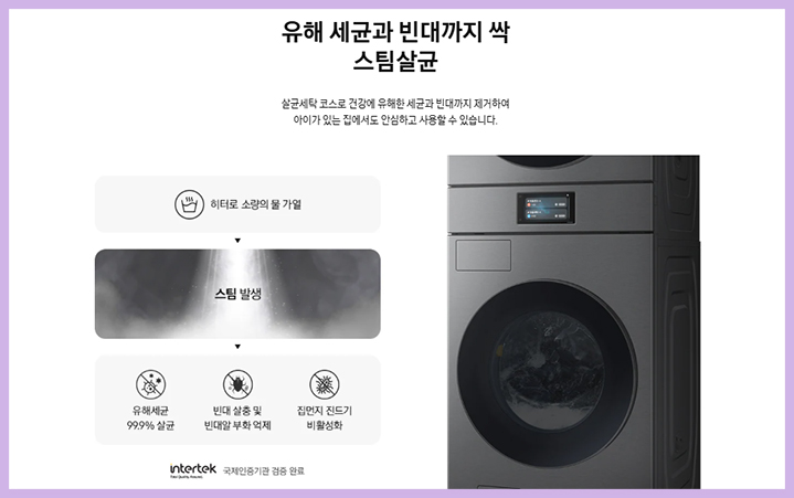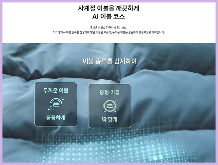 AI 기술을 통해 세탁과 건조를 보다 효율적으로 할 수 있고 빨래양에 따라 물과