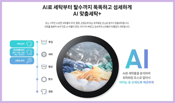 맞춰 세제를 투입하고 AI 버블을 통해 풍부한 거품을 생성하여 빨래 깊숙이