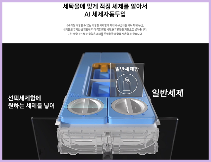 세제를 내 맘대로 선택할 수 있는 선택세제함과 일반 세제함을 탑재하고 있어
