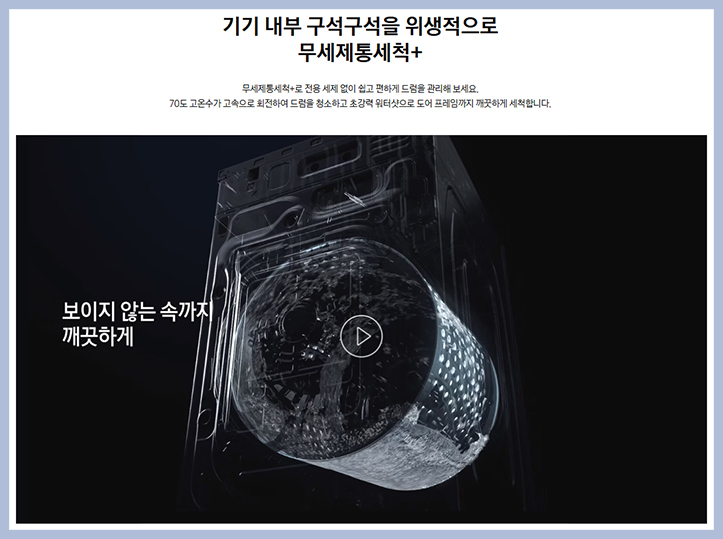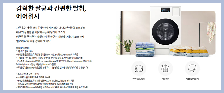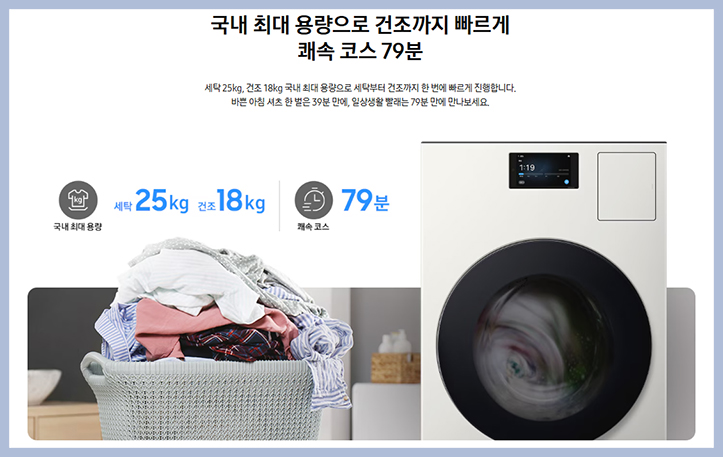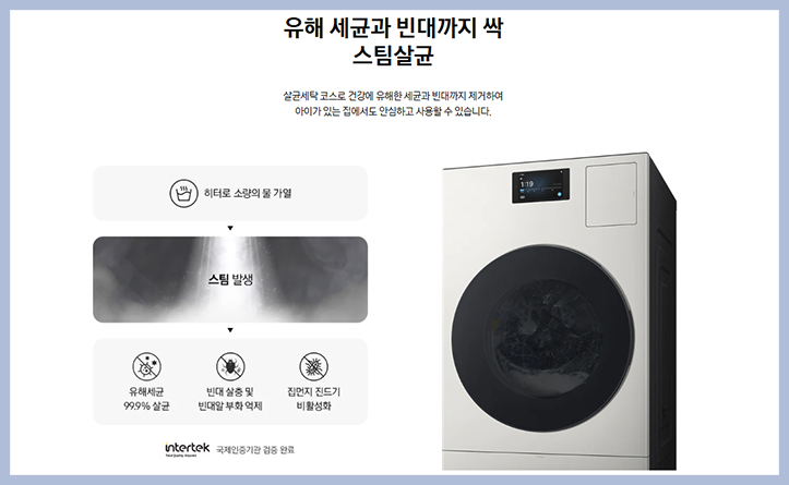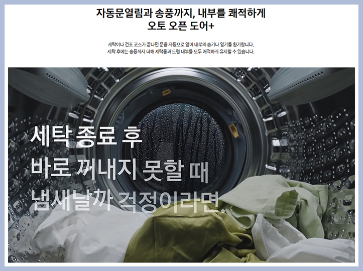 투입 오토 오픈 도어+ 스팀 살균 기능 등 다양한 첨단 세탁 건조 기술이 총망라