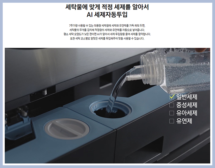 세제와 유연제를 부어만 두면 AI가 알아서 세탁량에 따라 자동으로 투입해