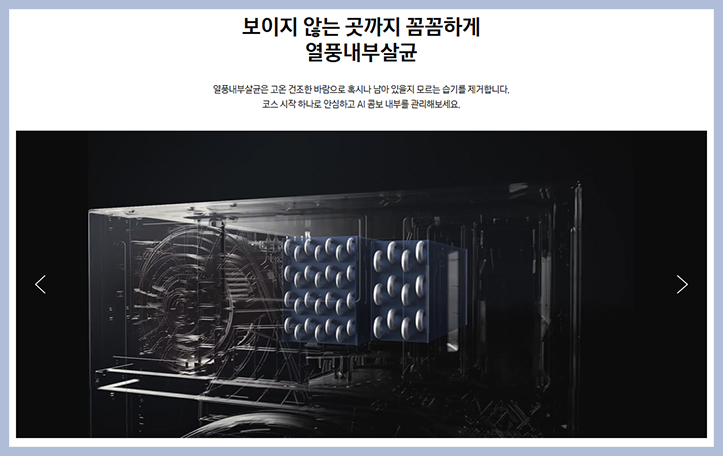 는 열풍 내부 살균 기능으로 고온 건조한 바람으로 혹시나 남아 있을지 모르는 습기를