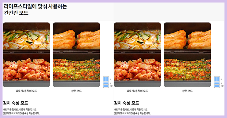 칸마다 최적의 온도와 습도를 설정할 수 있는 칸칸칸 모드는 사용자의 식습관과
