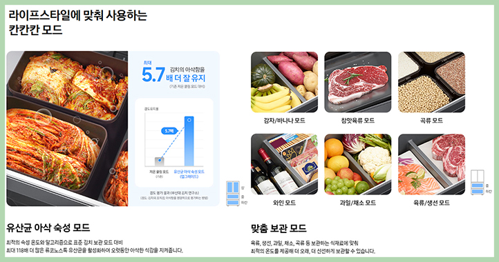 도 나중에 먹을 김치도 숙성 모드를 통해 건강하고 아삭하게 맞춤 숙성이 가능한