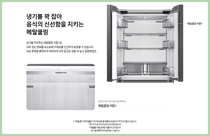 는 내부 온도 변화를 최소화해 식재료를 신선하게 보관할 수 있도록 메탈 쿨링 커튼