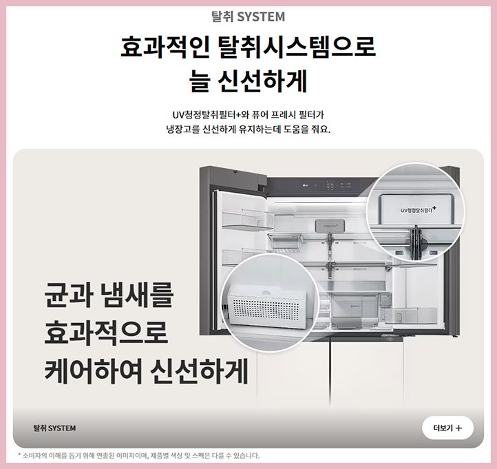 붙은 균에 자외선 LED를 비춰 균이 번식하는 것을 억제해 신선한 내부 환경을 유지