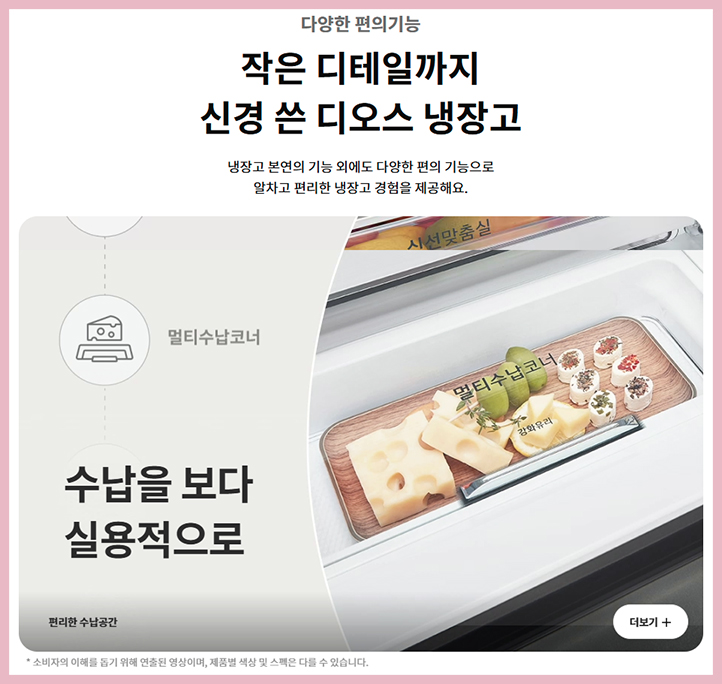 보관이 가능한 신선 맞춤실을 탑재하여 육류를 보관할 경우 일반 냉장고 보다 1.2배