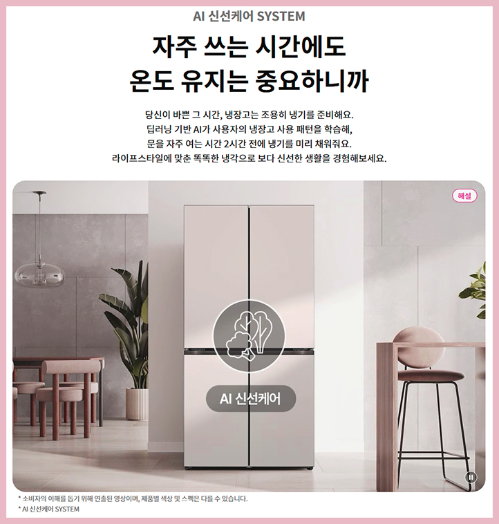 냉장고 문을 자주 열어야 하는 아침 시간에 미리 강력한 냉기를 채워줄 수 있도록 AI가