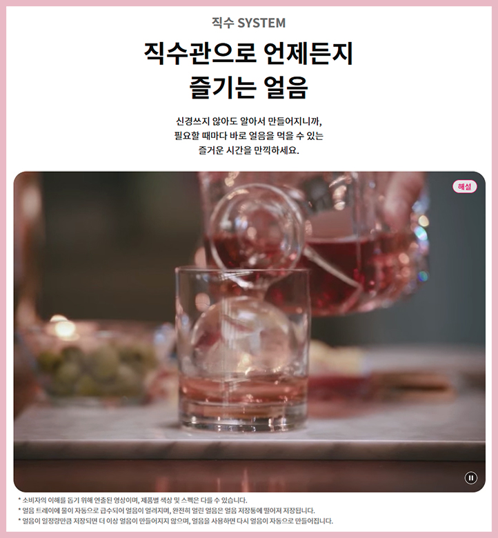 직수 연결을 통해 깨끗한 얼음을 사용할 수 있도록 중금속7 흡착 멀티 필터를 탑재하고