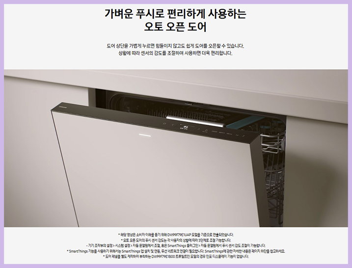 하고 세척기 도어까지 자동으로 열 수 있어 편리하게 사용할 수 있어요