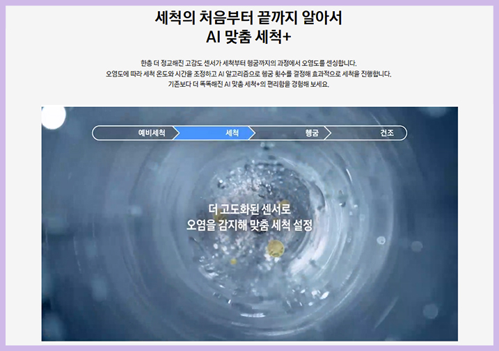 세척부터 헹굼까지의 과정에서 오염도를 센싱하여 헹굼 횟수를 추가하고 세척수의