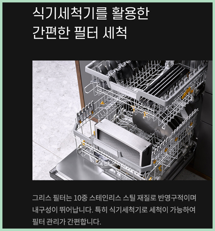후드에 장착된 그리스 필터는 정기적으로 분리하여 세척이 가능한데요 식기세척기
