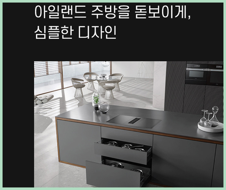 후드와 인덕션을 따로 설치하는 기존 방식에서 벗어나 공간 절약과 미니멀리즘을 동시