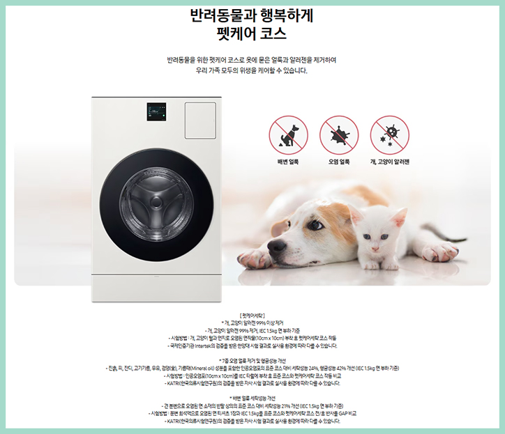 기기 내부 구석구석을 위생적으로 관리하고 팻케어 코스를 더해 반려 동물에 의해