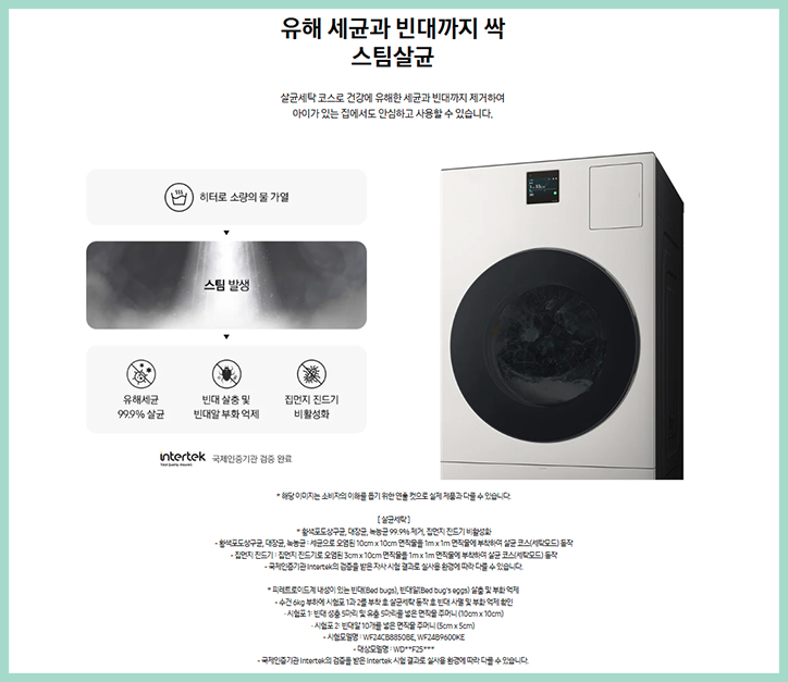 뿐만 아니라 살균 세탁 코스로 건강에 유해한 세균과 빈대까지 제거하여 아이가