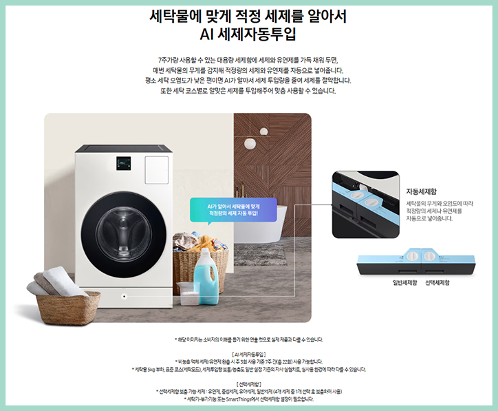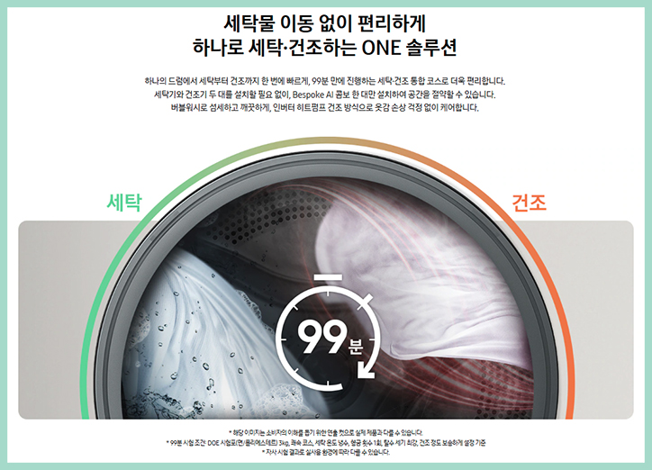 세탁 시 에너지 사용량을 최대 60% 줄일 수 있는 삼성 콤보 세탁건조기 는 진동