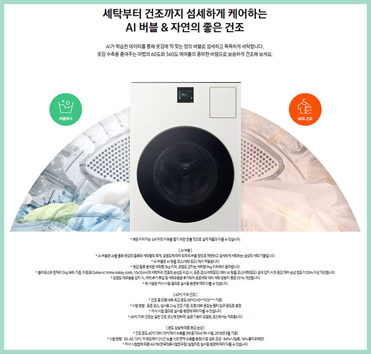 미세플라스틱 저감 코스를 탑재한 삼성 콤보 세탁건조기 는 버블 워시와 섬세한