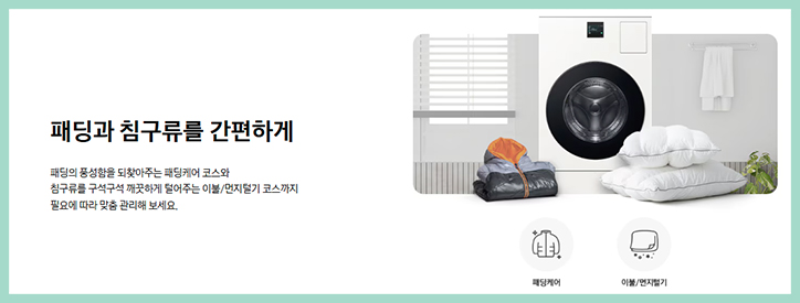 와 2단 댐퍼 레그링으로 조용하게 세탁해 드립니다