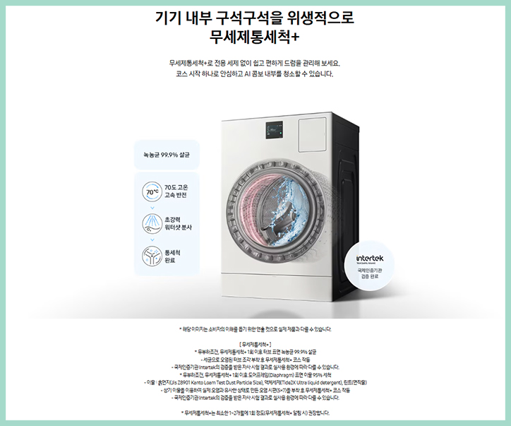 분사하여 열교환기 구석구석을 자동으로 청소해 주는 삼성 콤보 세탁건조기 는