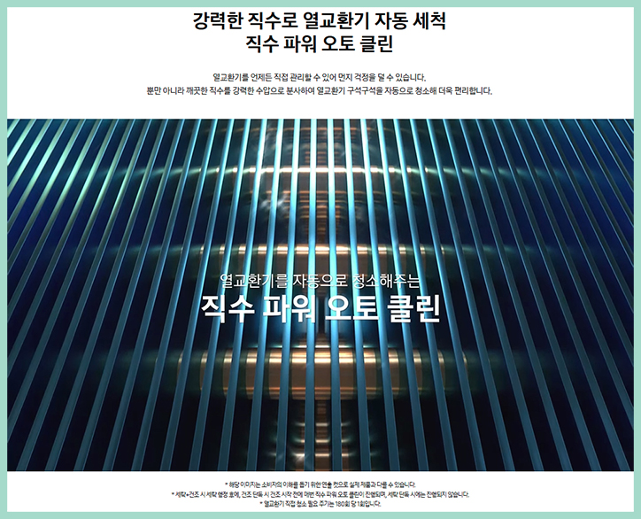 열교환기를 직접 열어 관리할 수 있어 먼지 걱정을 덜 수 있으며 강력한 직수를