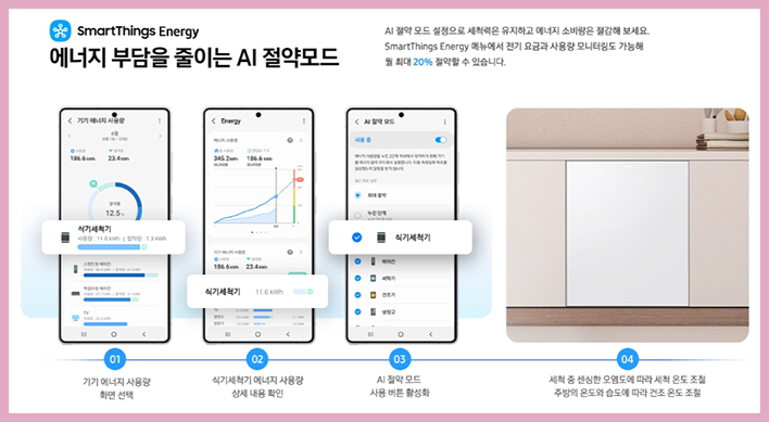 외부에서도 식기를 세척할 수 있고 식기류에 따라 AI가 물사용량을 조절해