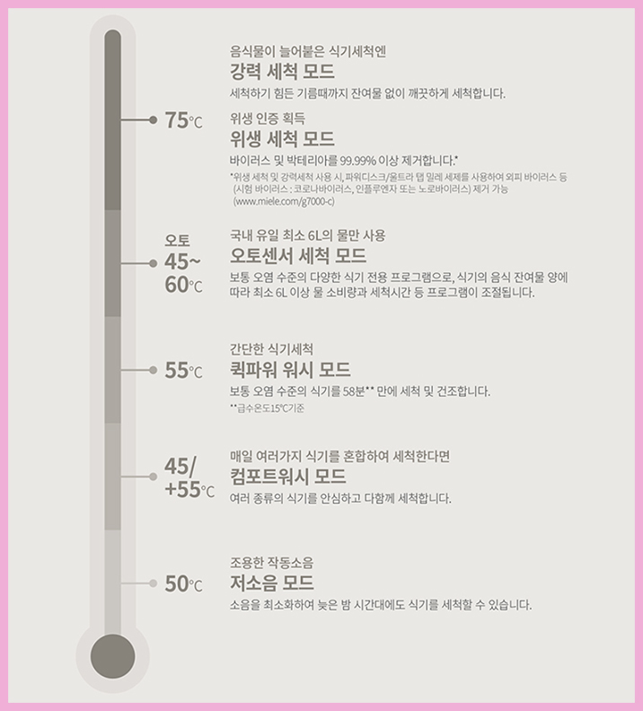 분사 압력을 조절해 주고 물온도를 프로그램에 따라 조절해 주기 때문에 오염이