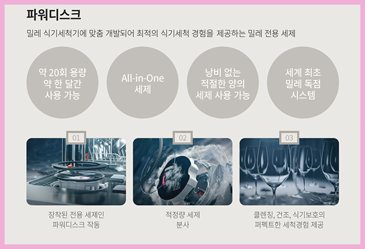 더해 더 편리하게 사용할 수 있는데요 밀레 전용 세제인 파워 디스크를 장착