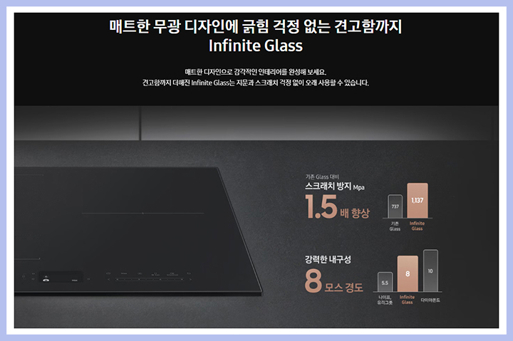 인피니트 인덕션 CC99F63G1DS 가 가지고 있는 특징은 무광 글라스를