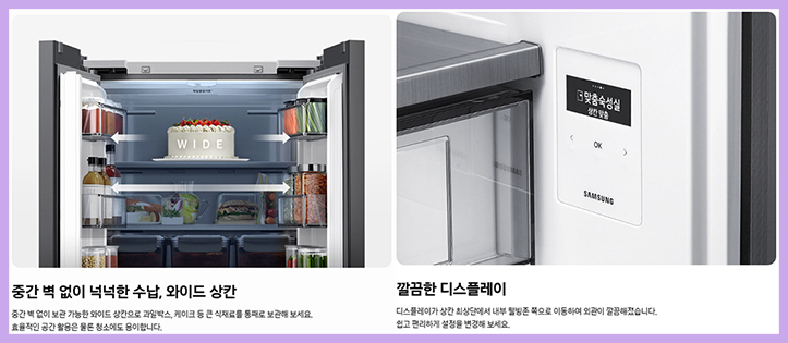 케이크 등 큰 식재료를 통째로 보관할 수 있으며 효율적인 공간 활용