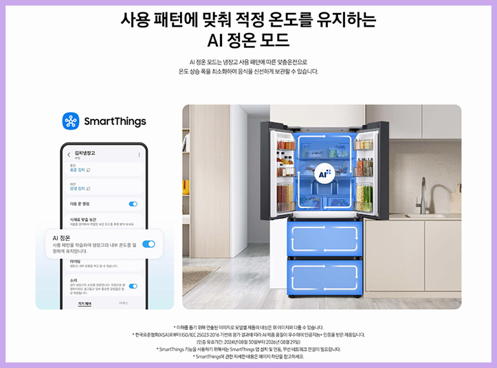 식재료 맞춤 보관 모드를 지원하는 RK70F49M1A 는 스마트 싱스앱에서