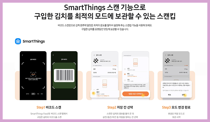 상칸 하단에 배치하고 보다 편리하게 사용할 수 있도록 스마트 싱스앱을 통해