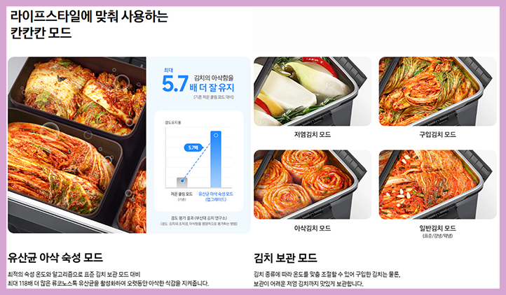 유산균 아삭 숙성 모드를 새롭게 추가했는데요 기존 유산균 숙성모드 보다