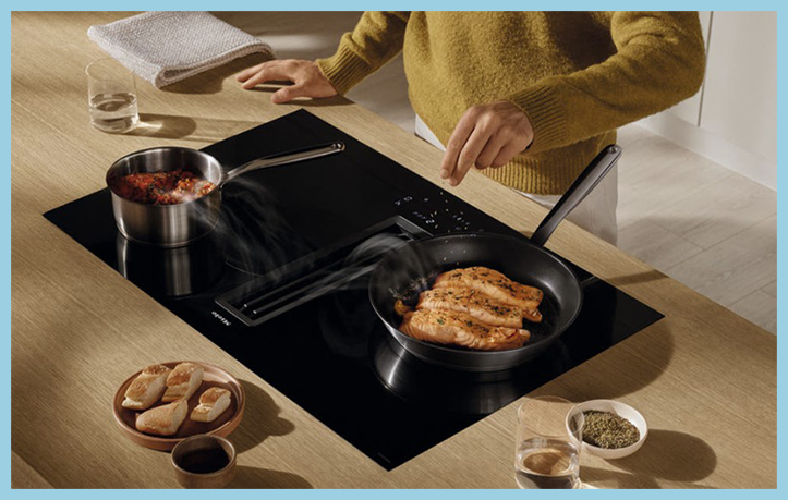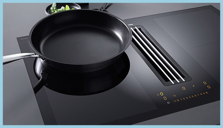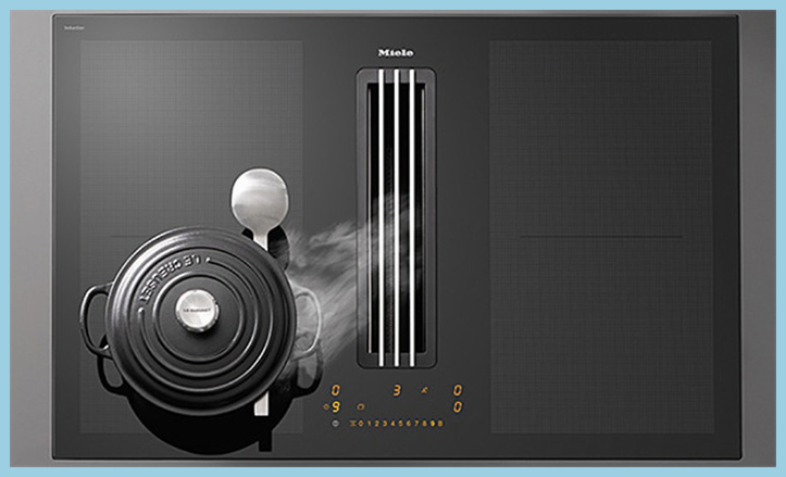 밀레 후드 인덕션 KMDA7476FL 은 후드 흡입구를 가운데 배치하여